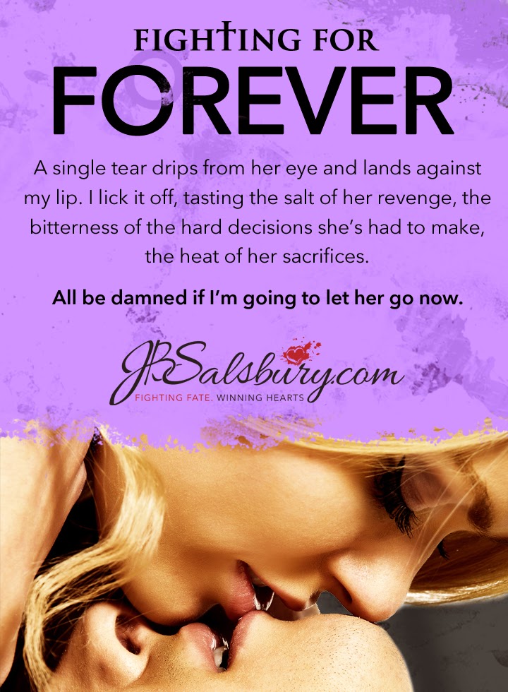 JB Salsbury, New York Times Bestselling author of the Fighting Series, lives in Arizona with her husband and two kids. She spends the majority of her day as a domestic engineer. But while she works through her daily chores, a world of battling alphas, budding romance, and impossible obstacles claws away at her subconscious, begging to be released to the page.